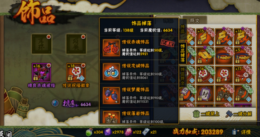要想精准地拿到心仪等级的传说饰品,你必须对游戏内各个饰品阶段的抗魔值门槛了如指掌。这个门槛是一个明确的数值区间,它直接决定了系统会分配给你哪个系列的饰品。想要获得90级的传说梦魇饰品,你的抗魔值需要达到13500点以上;而瞄准110级的传说