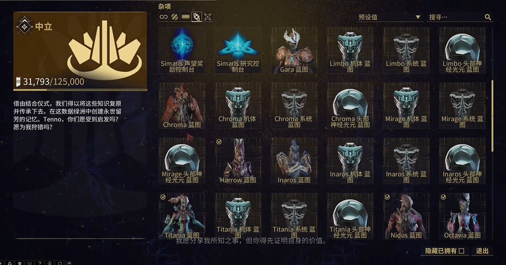 龙甲的三个部件系统、机体和头部神经光元的蓝图,都需要前往海王星的Psamathe节点,通过反复击败那里的鬣狗群BOSS来随机获取。这个BOSS由四个鬣狗组合而成,每次成功击杀并撤离后,游戏会随机给予你一个部件蓝图,有几率还会附带制作需要的奥