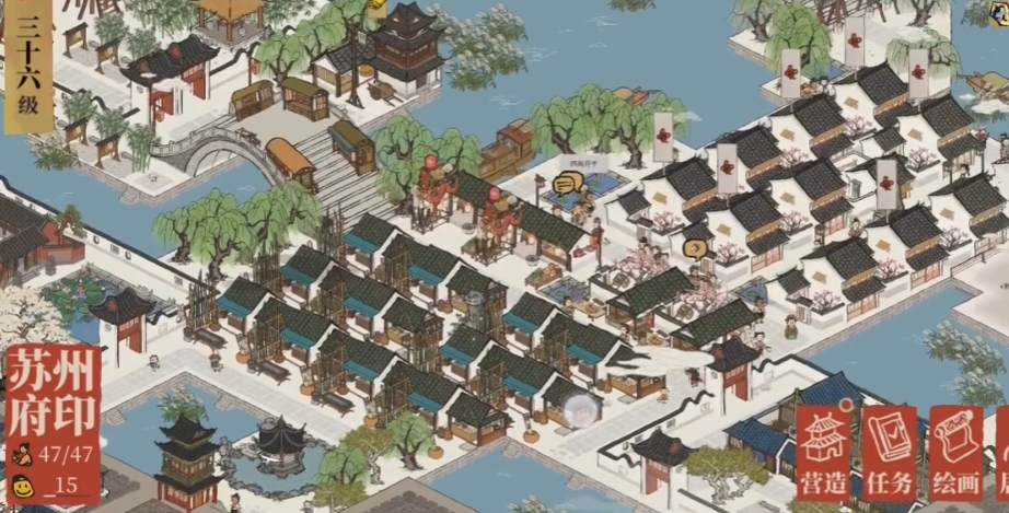 苏州府是建造赚钱建筑的首选城市,因为它拥有四块雕像加成区域,能够显著提升商业建筑的单次收益效率。苏州的雕像包括通贵狸、白公狸、分水狸和文星狸,每个都能为特定建筑提供50%或75%的加成,使得玩家可以在离线状态下获得更高回报。苏州府的渔具店在