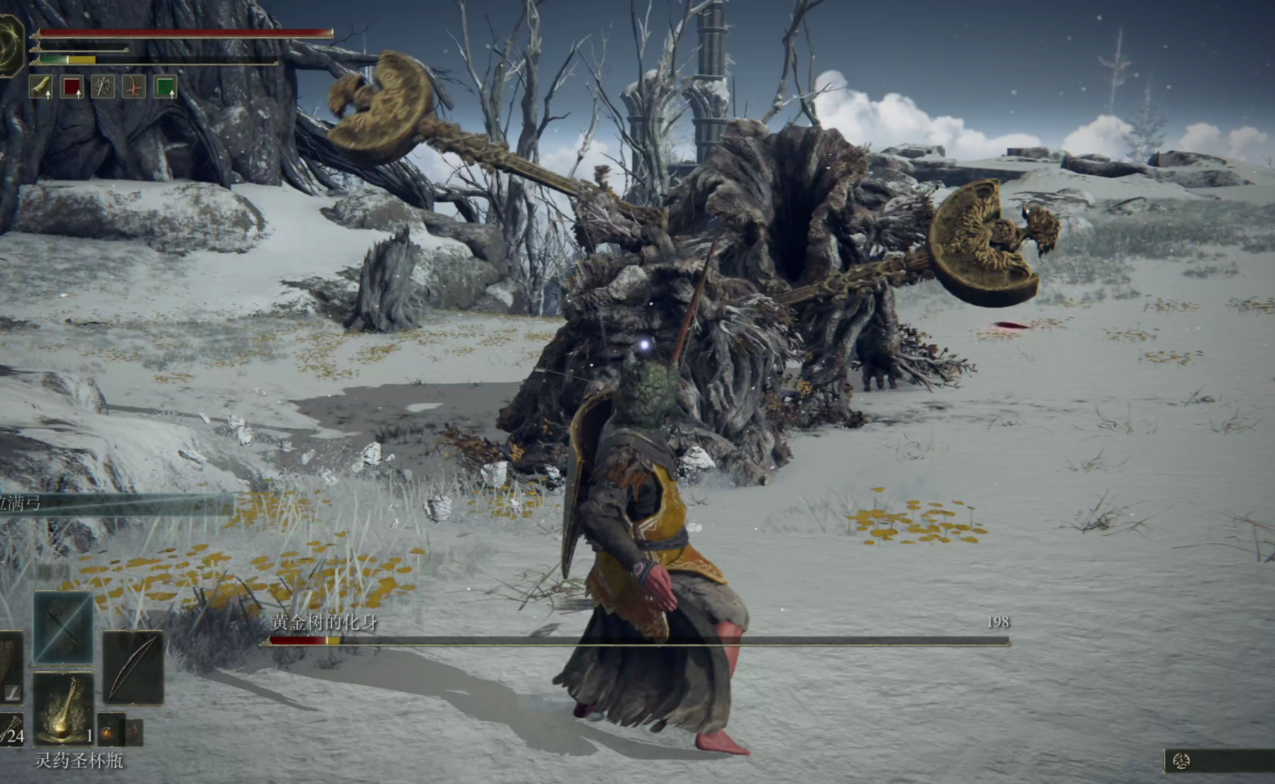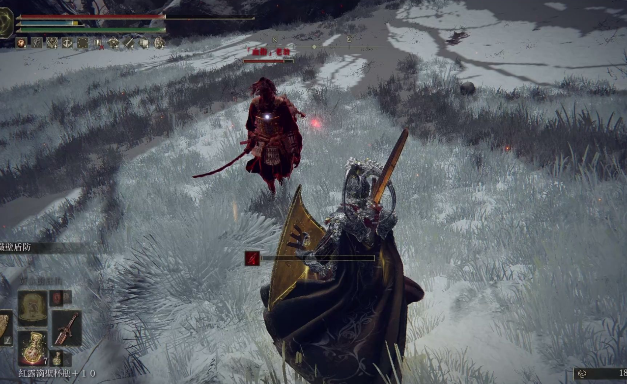 走到一片锁链区域时,从锁链上慢慢走过去,对面就是篝火和地图碎片,记得顺手拿了。接着往前会强制下马,再走几步就会触发红灵NPC血指老翁入侵。这家伙拿着尸山血海,攻击带出血效果,伤害挺高,建议提前补满状态再开打。击败他后就能拿到这把太刀和老翁面具,武器战技尸横遍野超酷,像极了隔壁游戏的不死斩!