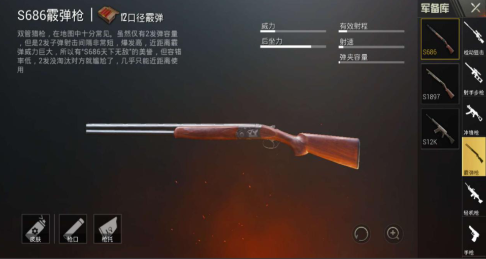 武器的强度取决于使用场景和玩家风格,但霰弹枪中的S686和S1897是近战爆发最高的武器。它们的单发伤害理论值可达225,只要9颗弹珠全中,三级甲和三级头也扛不住一枪。不过霰弹枪射程有限,超过50米伤害会大幅衰减,适合房区或巷战。