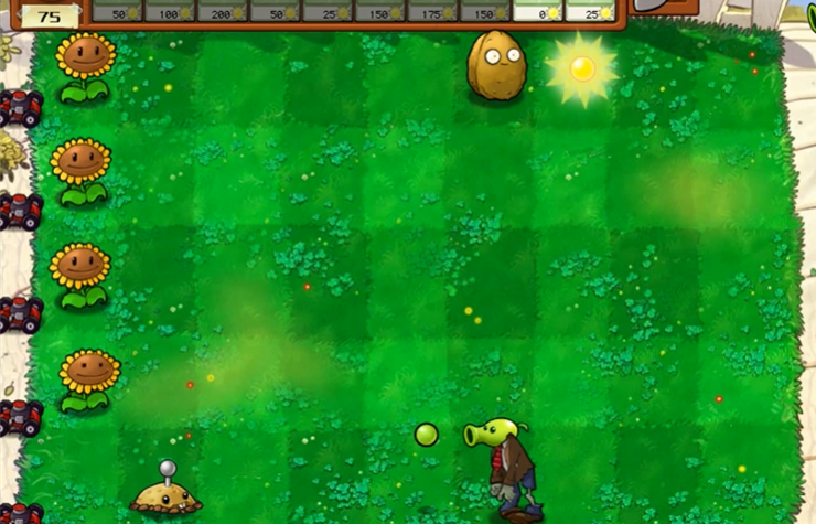遇到僵尸植物关卡时,咱们首先要明确这关的核心思路——用有限的植物对抗戴着植物头套的僵尸。开局别急着种攻击植物,优先横着种三排向日葵,这样能分散风险,避免某一行被突破后损失全部阳光来源。记得在僵尸出现的那一行提前埋土豆雷,它能秒杀第一个僵尸,为咱们争取更多时间发育。