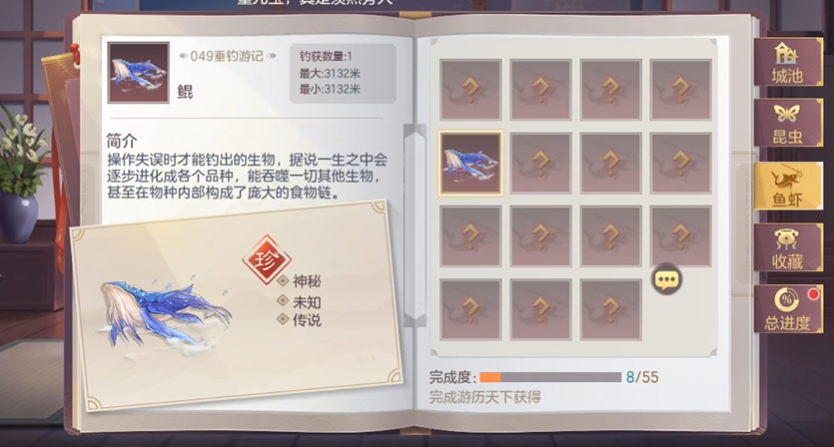 钓鱼前记得观察池塘里有哪些鱼种,系统会显示本次可钓到的鱼类。稀有鱼通常需要更精准的操作,比如金蟾这类传说品质的鱼会提供丰厚奖励。如果发现目标鱼游向中间位置,可以稍微等待再抛竿,这样能有效避免误钓普通鱼种。钓到新鱼种会自动激活图鉴并奖励元宝,所以遇到没见过的鱼一定要集中精力操作。