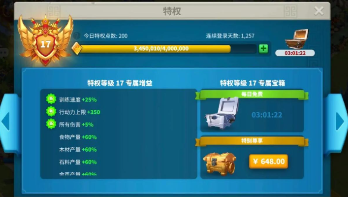 除了升级建筑和选择文明,特色兵种的训练还需要大量的资源和时间。T4兵种的训练条件更为苛刻,需要将市政厅升级到21级,同时学院也要达到21级。这时候建议大家优先提升VIP等级到6级,这样可以获得额外的建造和研究加速,还能永久解锁第二个建造队列,大幅缩短训练时间。加入一个活跃的联盟也很重要,因为联盟科技可以提供额外的建造和训练速度加成,帮助更快解锁高级兵种。