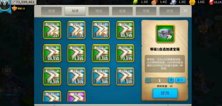 快速发育,关键在于合理利用系统赠送的加速道具。刚进入游戏时系统会送大量加速器,这些道具能大幅缩短建筑升级、科技研究和训练部队的时间。记得每天完成任务获取更多加速道具,优先用在市政厅、城堡等核心建筑上,这样能快速提升主城等级。同时注意资源建筑的收集频率,避免因爆仓导致停产。前期跟着新手任务走是最稳妥的发育路线,不要盲目追求战力而忽略了基础建设。