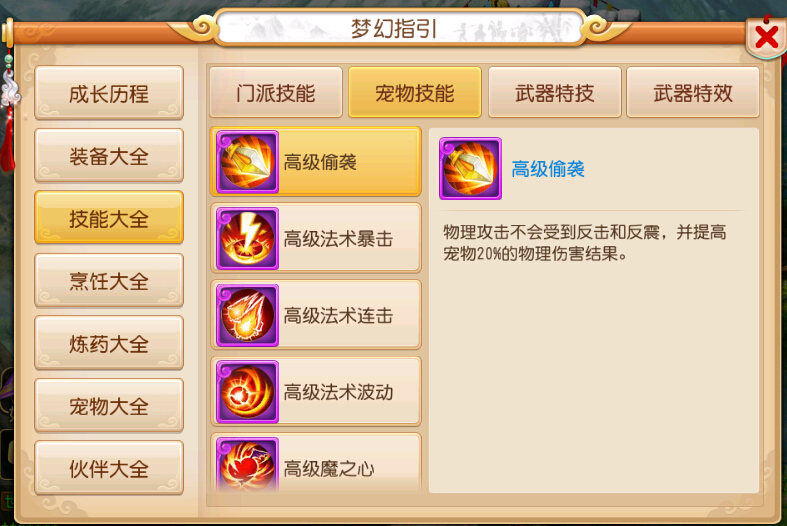 五技能攻宠的核心技能组合为连击、必杀、偷袭、吸血、突进(或强力),这是兼顾输出与生存的基础配置。物理攻击类技能中,连击提供多段伤害概率,必杀提升暴击率,偷袭增加伤害结果并免疫反击,吸血保证续航能力,突进或强力则针对敌方防御属性强化破防效果。若追求性价比,可选择低级兽诀,但高级技能的效果提升显著,例如高级必杀暴击概率从10%提升至20%、高级偷袭提高20%物理伤害。打书前需确保胚子攻击资质≥1500、成长≥1.2,初始力量属性较高者为佳,避免因资质不足导致实战效果打折。