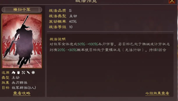 部队到达目标地点后应先驻守至士气值达到100再发起进攻,此举可提升15%的全属性加成。战法配置方面,主力武将的主动战法必须升至10级,推荐携带盛气凌敌、横扫千军等群体伤害战法,辅助武将则配备御敌屏障等减伤战法。觉醒两名核心武将可额外获得战法栏位,这对提升整体战力至关重要。