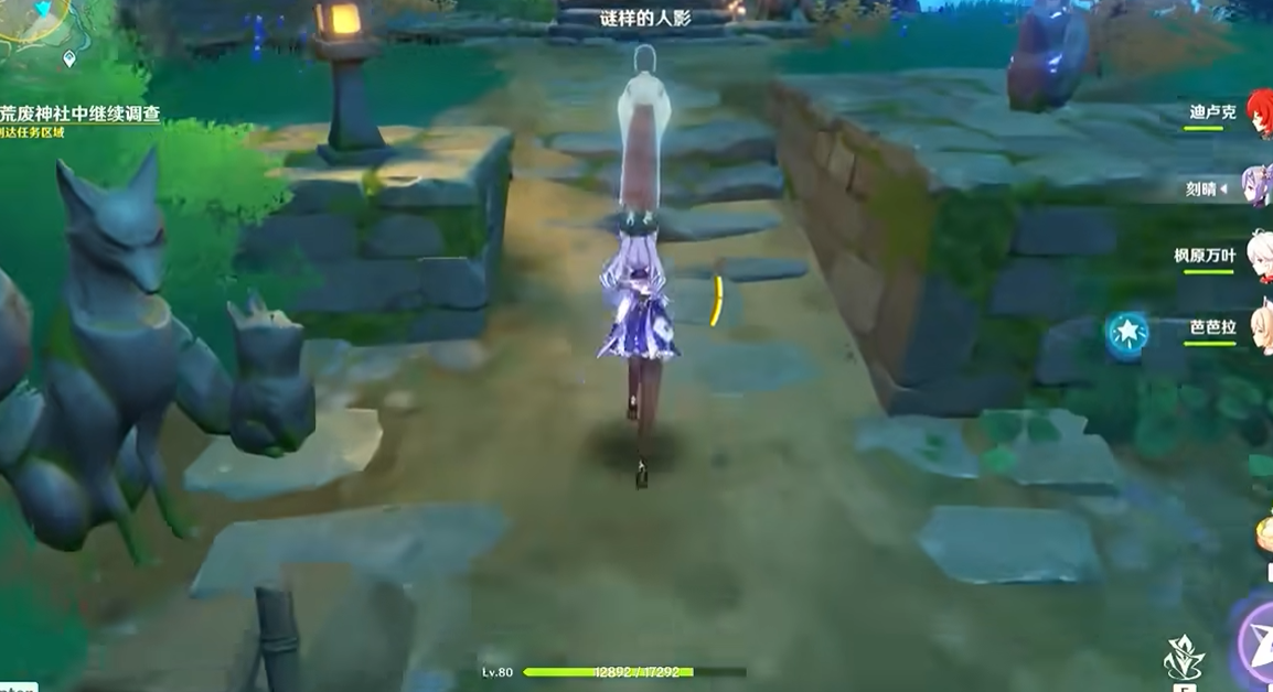 荒废神社位于绀田村东北方向影向山脚下,进入神社大门后能看到狐狸雕像和谜样人影。咱们需要先和三个谜样人影各对话两次,让她们分别移动到三个狐狸雕像旁边。注意第二个人影藏在屋顶容易被忽略,记得抬头找找。全部对话完成后,中间会出现三个宝箱和一本发光的书,这是后续任务的关键道具。