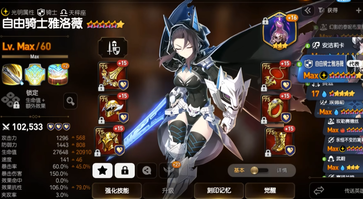 刷材料的同时也要注意雅洛薇的技能搭配。转职后的她技能会有很大变化,特别是S2的护卫效果和S3的晕眩控制都很实用。装备方面建议选择生命套或者反击套,前者能提升生存能力,后者可以频繁触发S1的自拉条效果。不用太追求速度属性,因为她本身就有不错的自拉能力,重点堆血量和防御就好。