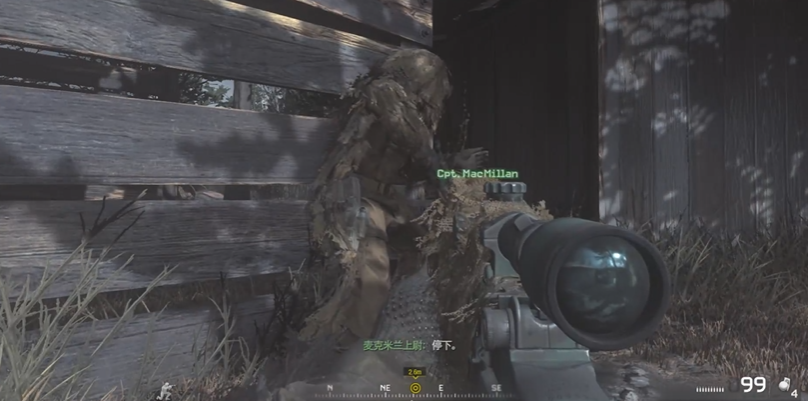 潜行阶段需全程趴下缓慢爬行,尤其在穿越开阔草地时,任何快速移动都可能触发敌人警觉。麦克米兰会提示巡逻队路线,玩家必须等待其背对或远离后再行动。若被迫交火,优先使用副武器快速解决近距离威胁,狙击枪仅用于必要击杀。装甲车等重型单位无法直接摧毁,需依靠环境绕行或利用爆炸物制造混乱。