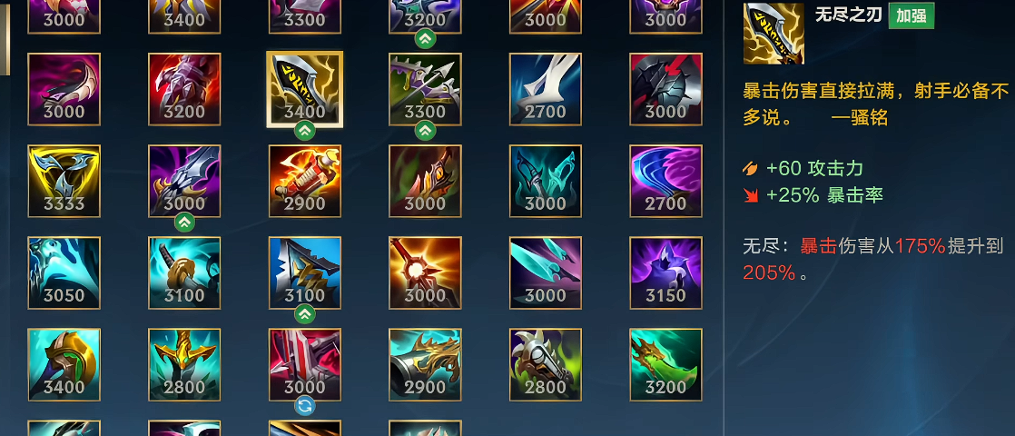 AD流的核心装备是魔切、烈阳魔刃和无尽之刃。魔切能解决天使前期蓝耗问题,配合2技能的回血效果让她线上更持久。烈阳魔刃的暴击被动和天使的1、3技能完美契合,能打出高额爆发。无尽之刃进一步提升暴击伤害,让她的普攻更具威胁。后期补上分裂箭和复活甲,既能增强AOE能力,也能提高容错率。鞋子选择吸血鞋附魔金身,增加生存和续航能力。