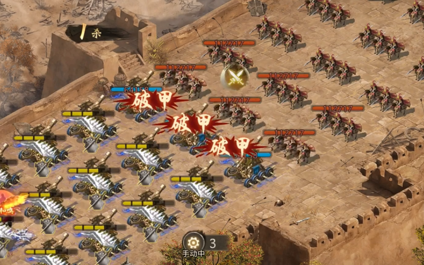 战斗开始时,曹操首发出场并采取克制战术,最后一排释放战法为黄月英叠加护盾。黄月英上场后若战术被克制需手动切换,减少被克制的次数。夏侯渊保留最后一排战法释放地裂,该技能能显著增强周泰的输出效率,使敌方NPC剩余兵力降至2排左右。周泰凭借喷火车和双黄甲的防御优势,配合曹仁的被动抗战法特性,能稳定消耗敌方兵力。