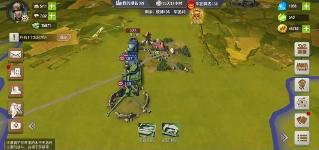 组建军团城军队需要从基础建设、资源管理、兵种搭配和实战演练四个关键环节入手。首先必须确保城市基础建设的稳固,指挥部作为城市中枢需优先升级以解锁更多建筑和科技,工厂和科技中心则分别负责重型装备生产与军事科技研发。资源方面需平衡资金、石油、钢材等物资的生产与消耗,通过占领地图资源点或交易所调配来保障军队扩张需求。初期建议采用426配置(轻型坦克、反坦克炮和步兵组合),装甲单位作为抗伤主体减少战损。