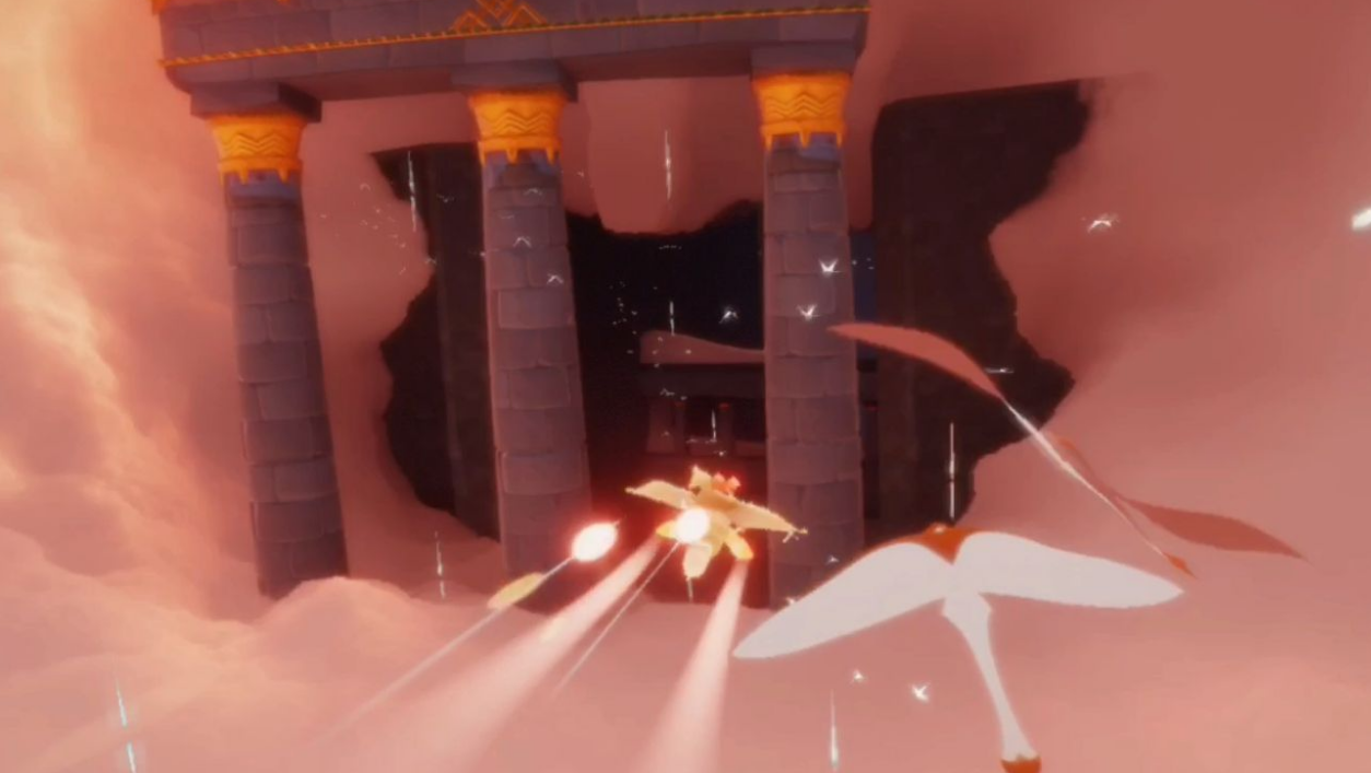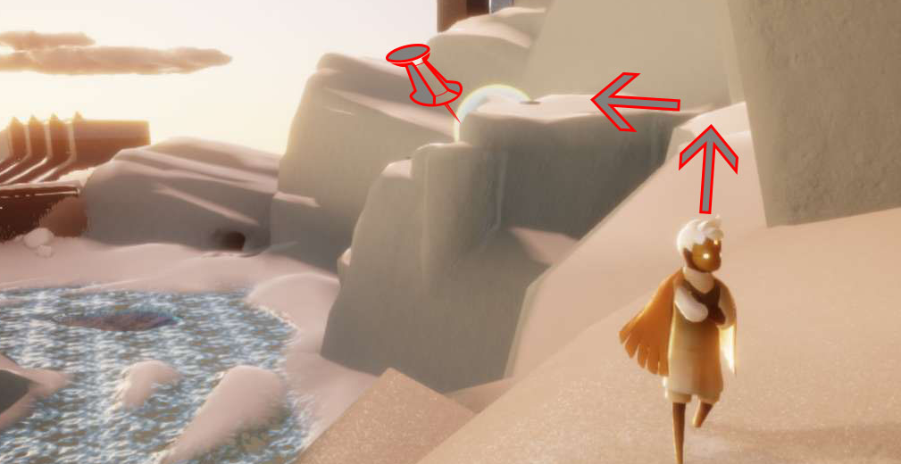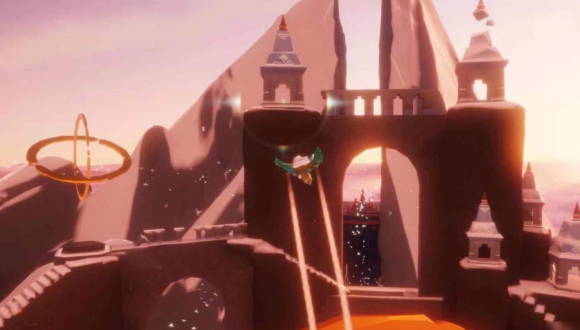 抵达隐士山谷后,沿小路攀爬至山顶建筑群。在房屋右侧转向太阳方向飞行,注意保持能量充足,可借助云层恢复。飞行约30秒后,视野中将出现雪隐峰的轮廓。需调整飞行角度,确保朝向山峰顶部冲刺。若能量不足,可短暂降落在云层或地面补充。