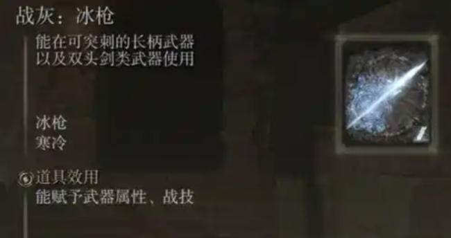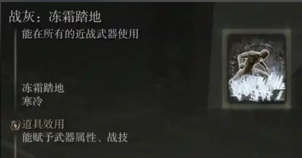 冻霜踏地作为早期可获取的战灰,能将任意可质变武器转化为寒冷属性,其扇形范围攻击兼具高伤害与快速累积冻伤的特性,适合应对群体敌人或高韧性目标。该战灰位于利耶尼亚湖区域的隐形粪金龟处,需在夜晚击杀目标获取。冰枪战灰则提供远程冰属性投射能力,命中后造成可观单体伤害与冻伤累积,适合中距离作战,获取位置在门前镇大桥附近的夜晚限定敌人处。暗月大剑作为传说武器,需完成菈妮支线后获得,其战技可赋予武器暗月之光,轻攻击释放月光波的同时附带冻伤效果。