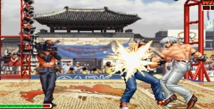 从操作细节来看,掏魂的摇杆输入需要保持连贯性,尤其是从前到下再到前的过渡必须流畅。对于新手玩家,可采用简化输入方式:在1P位置(角色面向右)时,从右下方向(↘)快速划半圈后按拳键,类似升龙拳的输入逻辑。若角色面向左,则需反向输入(↙←↙+A/C)。该技能对空判定较弱,且无法防御飞行道具,实战中需谨慎使用。