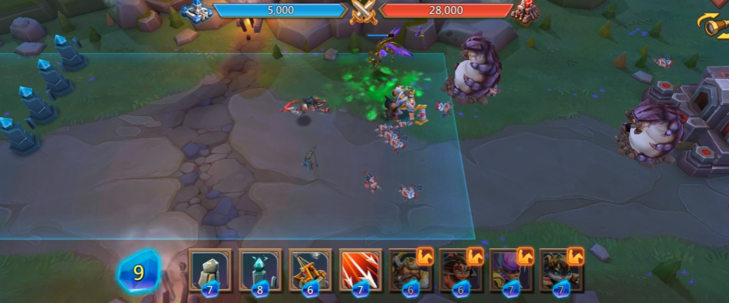 针对该关卡的特殊机制,建议将步兵和弓兵作为辅助单位,用于填补战线空缺。步兵可放置在炮车前方吸引火力,弓兵则布置在侧翼提供额外输出。黑炎技能可作为备用清兵手段,在敌方小兵聚集时使用。战斗后期若敌方防御塔所剩无几,可集中火力快速摧毁基地,避免与残余英雄纠缠。卡牌等级需达到平均12级以上,否则输出效率可能不足。