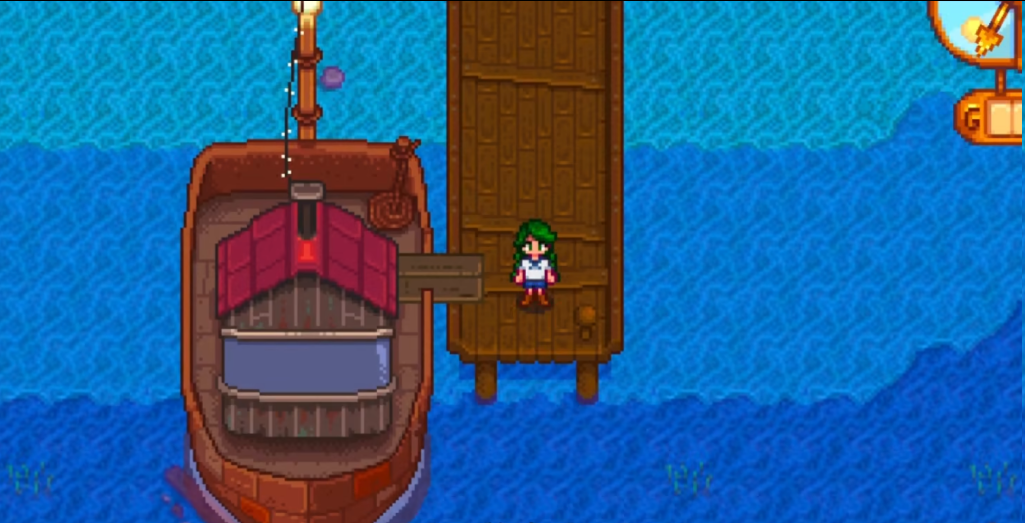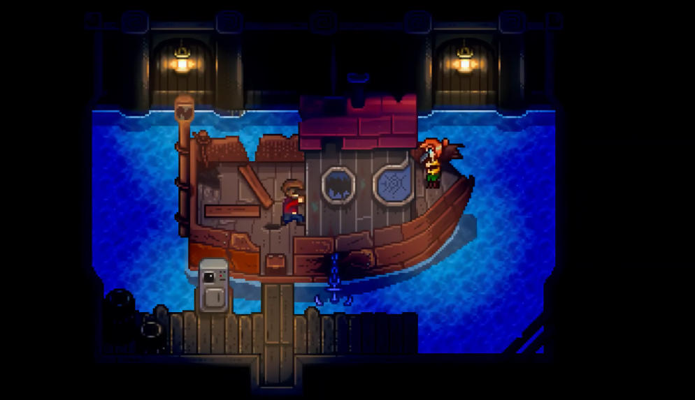 解锁姜岛,首先得完成社区献祭或者Joja超市的全部发展项目。这两条路线选哪条都行,完成后第二天就会收到渔夫威利的信,邀请你去他的鱼店后屋看看。这时候直奔海滩的鱼店,从威利身后的那扇门进去,会发现一艘破旧的船,接下来咱们的任务就是把它修好。