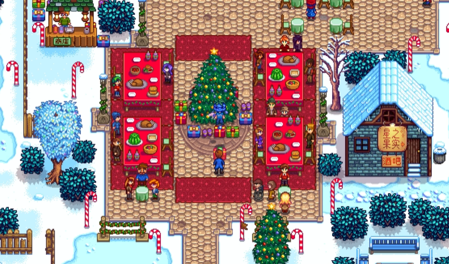 冬日星盛宴的设计灵感显然来源于现实中的圣诞节传统,但游戏为其赋予了独特的星露谷特色。通过这个年度活动,玩家不仅能快速提升与指定村民的好感度,还能体验到小镇温馨的节日氛围。建议玩家在日常游戏中就注意收集各种NPC的喜好物品,以便在接到通知后能立即准备合适的礼物。虽然活动流程相对简单,但精心准备的礼物交换仪式确实能带来强烈的节日沉浸感。
