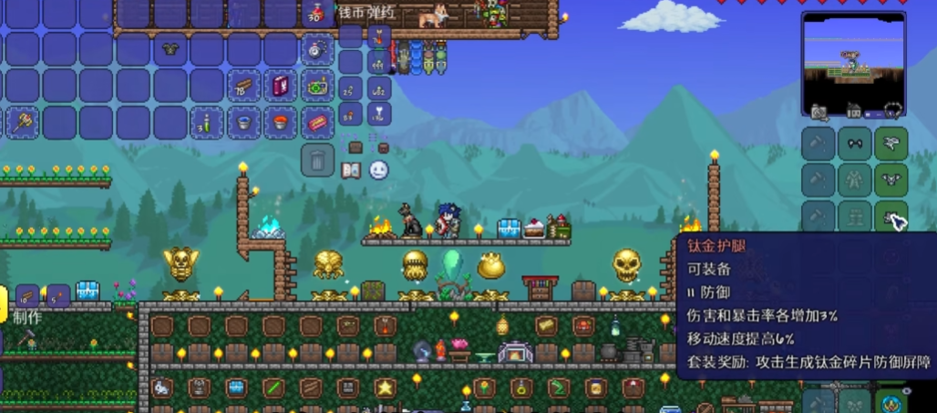 挖到足够的矿石后,赶紧回家制作熔炉和砧台,把矿石熔炼成锭。优先做一套精金或钛金防具,它们的防御力和套装效果能帮你应对肉山后的高强度战斗。武器方面可以选择代达罗斯风暴弓或玛瑙散弹枪,这些武器在对抗新三王时非常实用。如果走法师路线,可以用光之魂合成光明法杖;召唤师则推荐刷蜘蛛巢穴做蜘蛛权杖。记得把饰品都重铸到+4防御,整体防御堆到80以上会更安全。