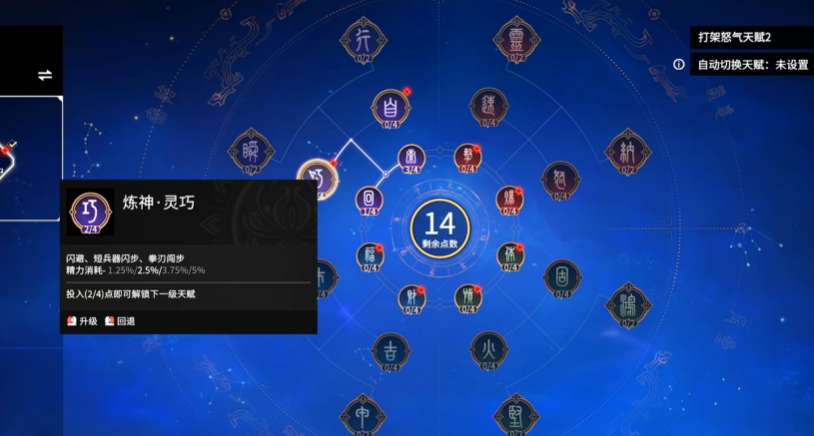 天赋选择以怒气回复和技能冷却为主。紫色印记带暴怒加快大招积累,红色选易怒缩短奥义CD。绿色犬奴增加开局怒气,蓝色急速提升技能释放频率。魂玉优先拿抽芯补天,击杀回甲配合妖刀斩能持续作战。团战时绕后开大,用左键飞盘调整站位,右键斩击瞄准残血,别贪刀,三连斩后立刻撤出。