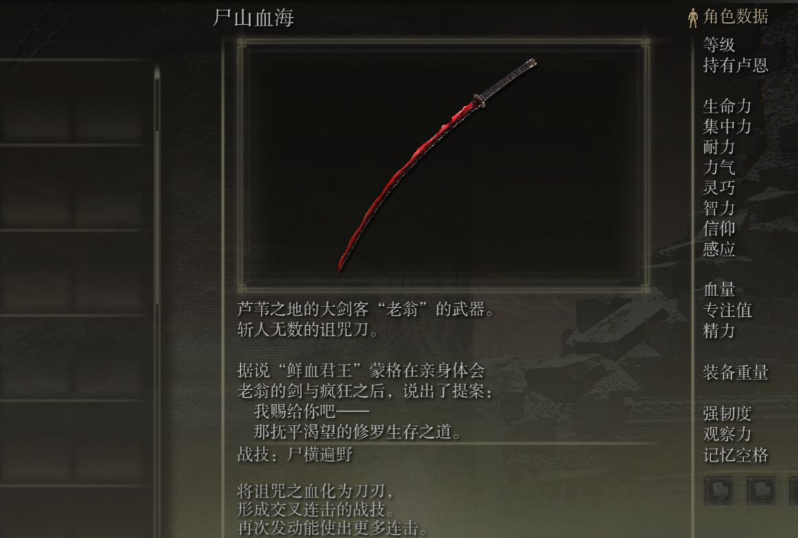 加点方面走智力流比较平滑,前期可以血、力、敏对点,后期慢慢补智力。玩双刀要注意两把武器都需要强化,会消耗大量锻造石。如果觉得收集两把刀的强化材料太吃力,可以右手拿名刀月隐左手带法杖,这样近战远程都能兼顾。感应流派也是不错的选择,尸山血海加长牙的组合在后期表现抢眼。