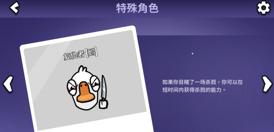 鹅鸭杀复仇者的技能持续时间是10秒,这是小伙伴们最需要记住的关键点。复仇者属于好人阵营,当亲眼目睹一场凶杀时,屏幕会泛红并立刻获得短暂刀人能力。这个机制让复仇者成为好人阵营里最特殊的临时杀手,但要注意技能触发后必须快速行动,毕竟10秒转瞬即逝。