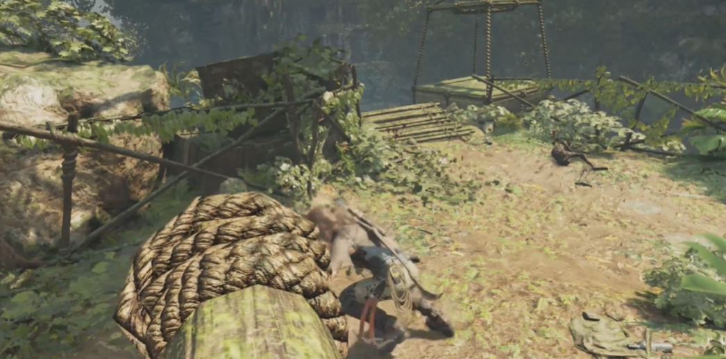 秘鲁丛林区域还存在名为冥界之门的另一座古墓,其入口位于丛林遗迹大本营内侧的石门通道。穿过石门后需借助树干和岩壁进行系列攀爬,在峡谷地形中通过树枝摆荡抵达对面平台。该古墓的难点在于断桥处的机关破解,需使用绳索箭矢拉开封闭的木栏,并解除左侧隔断的绳索陷阱才能继续深入。探险过程中可收集到显示地图标记的背包道具,帮助定位区域内其他收集品。