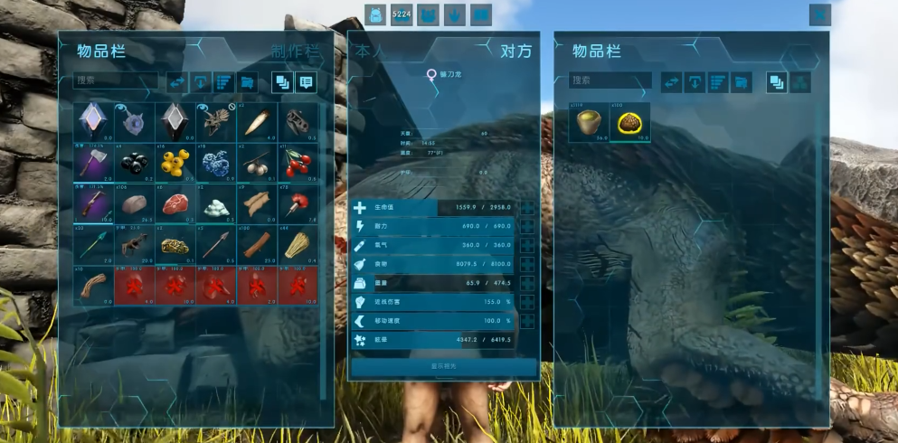 它能高效采集木材、纤维、兽皮等资源,左键攻击侧重采集数量,右键则能精准获取特定材料。镰刀龙的鞍具需要69级解锁,骑乘时可以调整采集模式,比如专门收集纤维或筛选浆果。虽然负重和移动速度不算突出,但超高的攻击力和多功能性让它成为中期必备伙伴。记得随身带足麻醉物品,野生镰刀龙有主动攻击倾向,随时可能遭遇战斗。