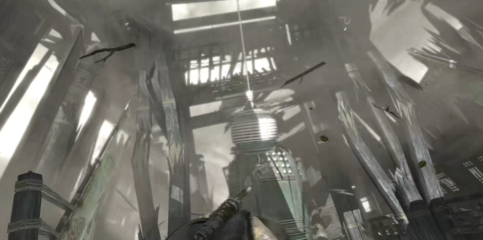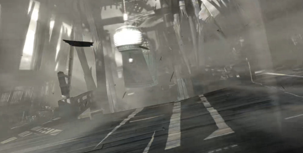最终阶段需同时开启两扇窗户,使风力平衡并将钟摆置于正中位置。站在钟摆正前方,再次使用弓箭拉动钟摆全力撞击顶部横梁。大钟坠落时会砸穿地面障碍物,需注意快速移动至安全区域避免被坍塌物波及。该过程中需保持耐心,若某次撞击未达到预期效果,可关闭窗户重新调整角度再次尝试。