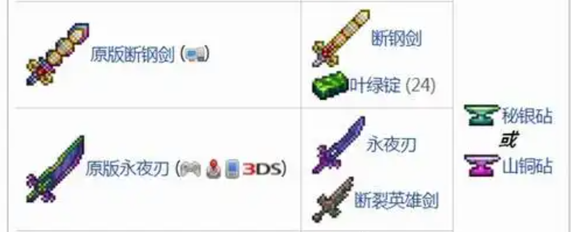 拿到断裂的英雄剑后,下一步就是合成觉醒武器。你需要先做出永夜之刃和神圣之剑,这两把武器分别由光之驱逐/血腥屠宰者、村正、草薙和炽焰巨剑合成,以及用神圣锭制作。有了它们之后,再分别和断裂的英雄剑结合,就能做出觉醒永夜之刃和觉醒神圣之剑。合成过程需要在秘银砧或山铜砧上进行,记得提前准备好这些工作台。