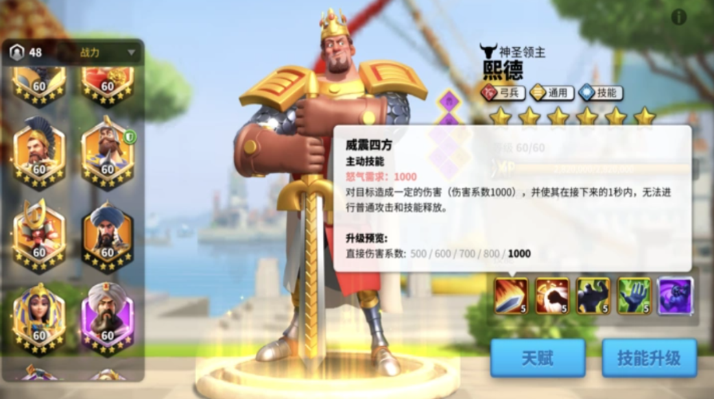 在培养优先级上,熙德更适合弓兵专精玩家或资源充裕的中期玩家。若以野战为主,建议优先升级技能天赋和弓兵天赋;若用于集结,则需强化通用天赋中的行军速度与伤害增益。装备方面,紫色品质的沉寂审判或金色永夜之辉可提升技能输出,但需根据资源情况权衡投入。需注意,熙德在后期容易被三代弓兵武将替代,因此非弓兵主力玩家可暂缓培养。