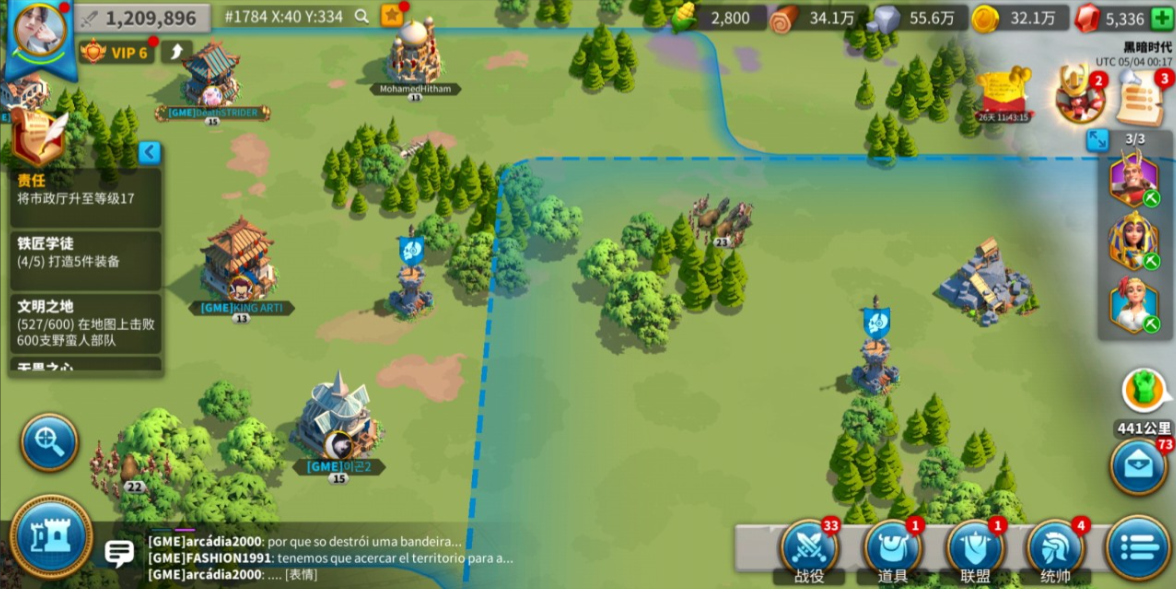把咱们的城市迁到联盟外面,首先得满足几个硬性条件。这时候打开地图,点击左下方前往城外,双指缩小屏幕直到右下角出现地球图标,选择想去的国家和王国的具体区域,确认迁城位置显示为绿色就能操作了。如果迁城后发现不在目标区域,记得包里还有新手迁城道具可以再试一次。
