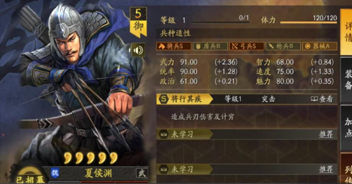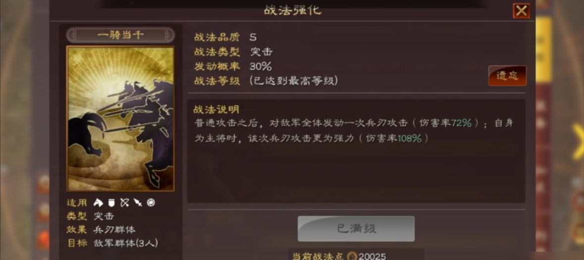 最后张辽的强度主要体现在爆发和针对主将的能力上,所以搭配战法时尽量选择突击类,比如一骑当千、暴戾无仁等。兵种方面优先选骑兵,尤其是虎豹骑,能有效提高突击战法的发动率。这样一来,张辽在战场上的表现会更加稳定,无论是PVP还是PVE都能发挥重要作用。