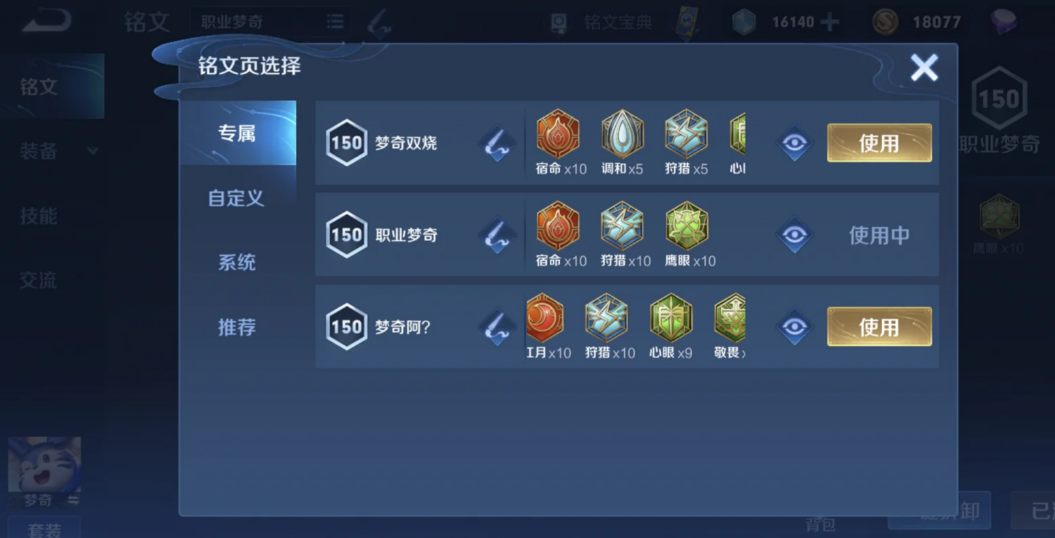 铭文的搭配是攻速、暴击率、物理穿透和一点吸血续航。一套比较通用的搭配是:红色选择10个红月,这提供了可观的攻速和暴击率,让梦琪前期清野和对拼更顺畅;绿色选择10个鹰眼,这是物理英雄几乎必带的铭文,提供固定的物理穿透和攻击力,确保对敌方英雄和野怪都能打出有效伤害;蓝色铭文则可以有灵活选择,常见的是携带5个狩猎和5个夺萃,狩猎提供的攻速和移速能进一步提升梦琪的机动性,而夺萃提供的物理吸血则能显著增强他在野区的续航能力,减少回家的次数。如果你对自己的走位和节奏非常自信,想追求极致的攻速和移速,也可以考虑带7个狩猎、3个夺萃,甚至全带狩猎。另一种追求更高暴击伤害的搭配是红色携带3个无双、7个祸源,再搭配狩猎和鹰眼,这样后期的暴击伤害会非常恐怖。