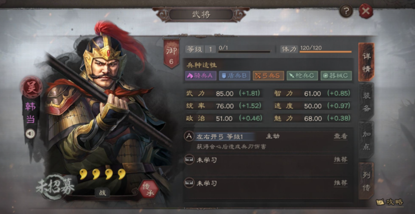 另一个推荐选择是百炼成钢这个战法,可以提升皇甫嵩的武力智力统率和速度四种属性,全面增强他的生存和输出。在游戏前期,皇甫嵩可以与韩当、刘封等武将组成弓兵队伍,利用韩当的会心增益和刘封的群攻效果来弥补输出上的不足。在队伍组合中,皇甫嵩常常与袁绍、朱儁等群阵营武将搭配,这样不仅可以激活阵营加成,还能形成攻守兼备的体系。
