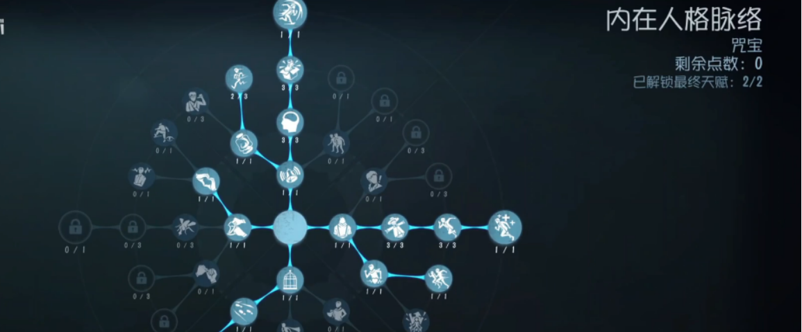 通常推荐带破窗理论和膝跳反射这两个翻窗翻板加速的天赋,这能极大提升咒术师的牵制和转点能力。另一个必带的是回光返照,也就是大心脏,在最后一台密码机点亮时能恢复健康状态并加速,是翻盘关键。绝处逢生允许你倒地后自愈一次,也是必选项。剩下的点数,可以根据自己习惯点出假寐来减慢在狂欢之椅上飞天速度,给队友更多救援时间;或者点出医者来提升治疗速度,缓解自身咒像反噬带来的治疗减速负面影响。