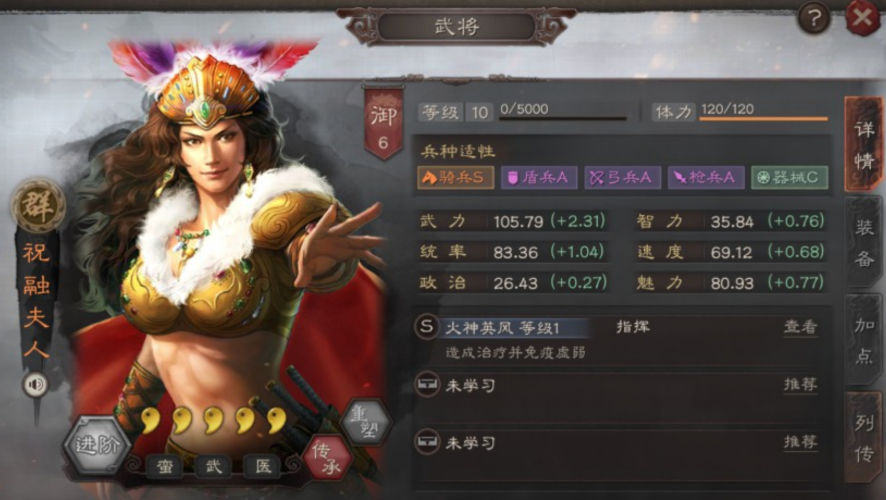 马云禄的武将定位围绕高普攻伤害展开,她的属性成长以武力为主,建议玩家在加点时优先选择全武力方向,以最大化她的输出能力。她的自带战法鸱苕凤姿能战斗回合推进显著提升普通攻击的伤害,尤其是在敌方兵力损失较多时,加成效果更加明显,这让她在持久战中表现出色。角色本身具有脆皮特点,因此在搭配时需要注重生存支持,确保她能稳定发挥出越战越勇的特性。