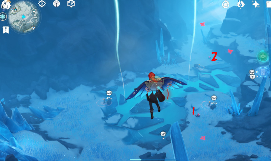 山中之物任务要求玩家定位并解冻三块特定的古代坚冰。第一块坚冰位于覆雪之路的忍冬之树附近。第二块坚冰隐藏在星荧洞窟的底部,到达那里可能需要完成洞窟内的某种挑战以解除屏障。第三块坚冰则坐落在眠龙谷区域的祭坛附近。解冻这些坚冰需要利用场景中名为深赤之石的特殊矿石:击碎深赤之石并拾取其能量,然后利用这股能量去攻击坚冰,通常每块坚冰需要重复此过程四次才能完全解冻。这是一个分步骤进行的探索与解谜过程。