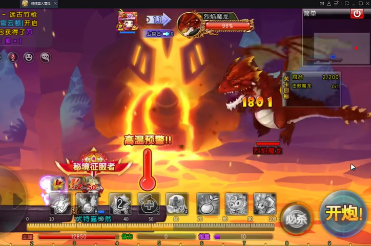 最终BOSS烈焰魔龙攻击范围广且伤害高需要利用地形优势如石台来躲避攻击,或者飞到安全位置进行输出。攻击时选择合适的炮弹类型和角度,例如采用30度45力或40度54力的组合直接打击BOSS。注意BOSS会释放黑色光线,如果被锁定并击中两次会很危险,因此携带冰冻道具或技能能有效应对。保持团队配合,共同瞄准BOSS弱点进行攻击,避免个体承受过多伤害。宠物配置推荐带豆子、司马和盾牌,这些能增强防御和生存能力。宠物技能选择飞翔提供移动,百轮增加伤害,一轮和慢生辅助战斗。