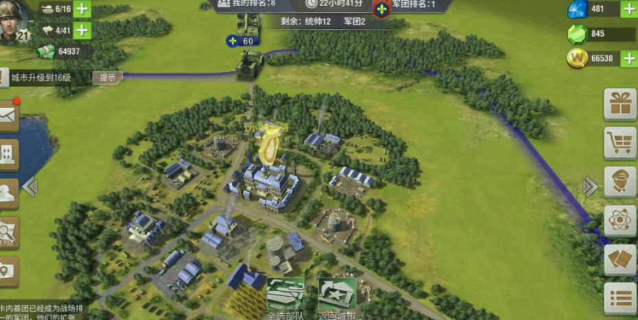 城市防御体系包括内城和外城的协同建设,内城重点发展城堡以提升城市容量和兵力上限,军队驻地用于恢复,研究所推进科技发展,外城的农田、矿山、伐木场和石厂需合理规划比例,以军事区建筑为主快速爆兵,保障整体防御的效率和稳定性。科技发展是提升防御实力的核心环节,必须持续研究陆军科技和侦察技巧至十级,同时重视燃烧引擎和喷气引擎的研究以增强部队的机动性和输出能力,科技中心等级提升能惠及所有城市,合理安排研发时间确保资源投入不间断。