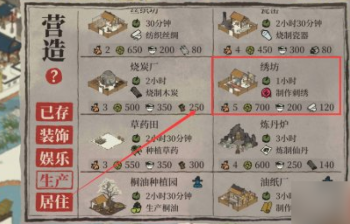建造绣坊需要消耗5名工人、700铜币、200菜肴和120丝绸的资源,建造过程耗时约1小时。尽管资源需求对新手玩家可能构成挑战,但由于刺绣在游戏中的广泛应用价值,如用于装饰提升城市美观度、作为交易材料赚取铜钱,以及满足客栈食客需求兑换香料升级客栈,这一投资是合理且必要的。绣坊建成后,玩家可以开始生产刺绣,其产量绣坊等级的提升而增加。