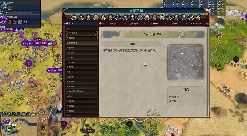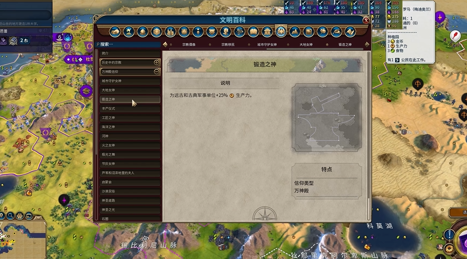 如果你的游戏开局条件特殊,也有其他可行的万神殿作为备选。宗教移民能直接赠送一个免费建造者并增加城市人口,是拓展疆域的高效选择,但通常极难抢到。若开局地块缺乏牧场或种植园,转而选择丰产女神或城市守护女神也是合理的,前者能加速建造者改良地块的速度,后者则能为远古和古典时期的单位提供防御力加成,帮你更安稳地度过前期。锻造之神虽被广泛认为是征服向最强选择,但其效果主要强化近战和抗骑兵单位的生产,与荷兰偏重经济和文化的发展路径并不完全匹配。