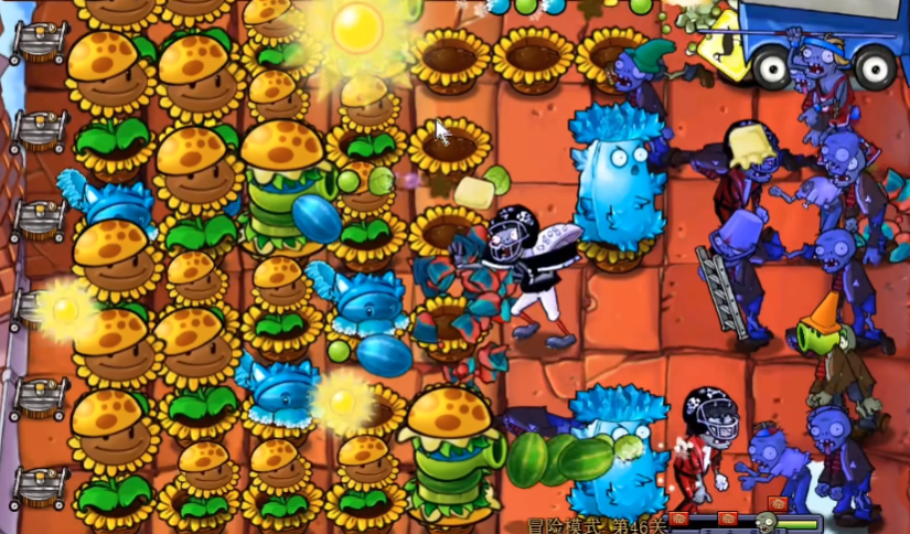 进入游戏中期,需要将经济优势转化为扎实的攻防体系。在阳光充裕后,应立即加强火力输出,例如将第二排补满玉米卷心菜投手。防御方面,坚果墙的冷却时间较长,一旦冷却完毕就应立刻种植在最前排充当肉盾。一个至关重要的技巧是在第一排最上方和最下方的位置各种植一个磁力坚果,它能有效吸走橄榄球巨人僵尸、扶梯僵尸等携带金属装备的敌人的工具,从而大幅减轻后排植物所受的压力。可以开始布局具有穿透和减速能力的寒冰仙人掌,为后期的僵尸潮做好准备。
