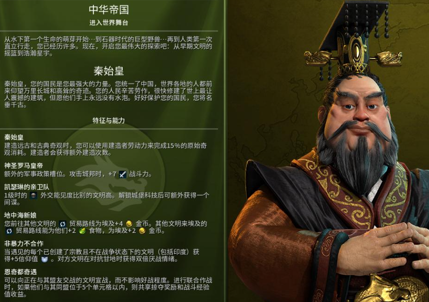 为秦始皇选择合适的地图是发挥其文明潜力的首要步骤,这直接关系到早期发展节奏与中后期的胜利路线规划。秦始皇的核心优势在于其建造者拥有额外使用次数,且能消耗建造者劳动力来加速远古与古典奇观的建造进程,同时其特色改良设施长城能提供可观的文化与金币收益。一个理想的地图需要能够充分支持其快速抢建奇观的需求,并为长城网络提供优良的建造地形,通常要求地图具备资源丰富、地形多样且带有一定战略纵深的特点。
