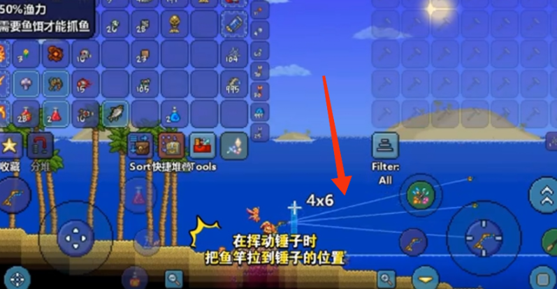 无论选择何种地形,充分的准备是成功钓鱼的前提。玩家需要准备一根钓竿和足够的鱼饵。游戏前期,通过工作台制作的木钓竿或击败特定BOSS后使用矿石制作的钓竿是常用选择。鱼饵则可以通过使用虫网捕捉草丛中出现的蠕虫、蛆虫等小动物来大量获得,它们的钓鱼力足以应对前期的需求。将鱼饵放置在物品栏中,装备好钓竿,在水域旁点击即可抛竿,观察浮标剧烈下沉时迅速收杆便能完成一次钓鱼。
