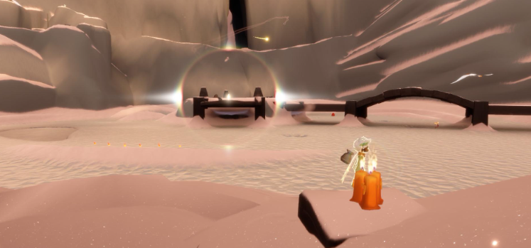 找到先祖后,靠近并点燃他即可激活追忆。激活后,先祖会在外面的溜冰场冰面上散落大量的橙色光点或光之碎片,你需要和同行的伙伴一起,在规定时间内将这些碎片全部收集起来。完成碎片收集后,记得再次回到那双人门后的房间里,与先祖互动即可解锁蹦跳动作,之后你就能在遇境的星盘中找到他并进行物品兑换了。