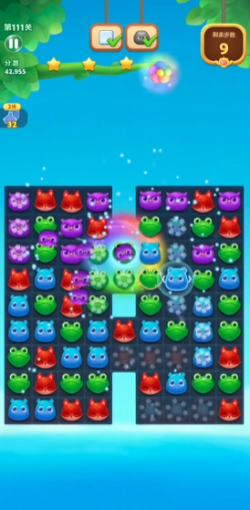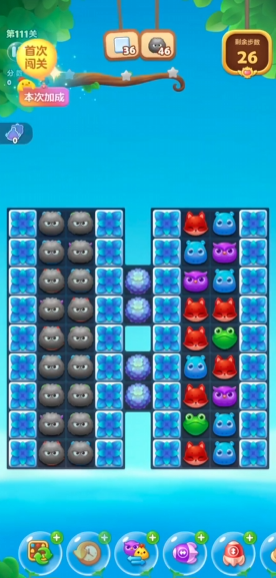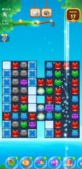 变化动物与特效的运用是通关的关键技巧。界面中的变化动物元素特点是能够随意转换动物的属性,本身可能是无法移动的两个动物,经过变化之后也许就能连接成为一个特效,因此看到它们出现一定要抓住机会快速使用。在特效组合方面,要优先制造和利用魔力鸟、爆炸特效等来打开局面,但需要特别注意有三种交换消除特效的效果非常差,最好避免使用,它们分别是横向特效加横向特效、竖直特效加竖直特效以及横向特效加竖直特效的组合,这类交换的消除效率远不如其他混合特效。