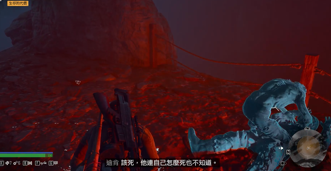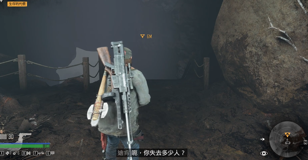 该洞穴是主线任务生存的代价的核心场景,玩家受欧布莱恩所托进入洞中救援其队员,任务流程需要跟随并调查地上留下的线索逐步深入。在洞穴深处会发现幸存的队员库柏,但其已遭受新型变异者迅击者的袭击而生命垂危,随后玩家将直面这种敌人,迅击者相比普通暴走者攻击更为敏捷,会在攻击后迅速隐藏,即使依靠耳听八方技能也难以定位,应对策略是在其出现后迅速利用子弹时间射击或通过近战连续攻击打出硬直将其击杀。