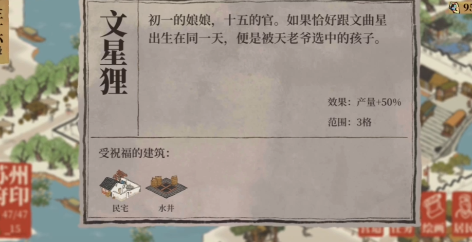 苏州府是建造赚钱建筑的首选城市,因为它拥有四块雕像加成区域,能够显著提升商业建筑的单次收益效率。苏州的雕像包括通贵狸、白公狸、分水狸和文星狸,每个都能为特定建筑提供50%或75%的加成,使得玩家可以在离线状态下获得更高回报。